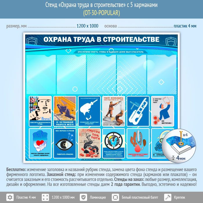 Стенд «Охрана труда в строительстве» с 5 карманами (OT-30-POPULAR) в Твери купить