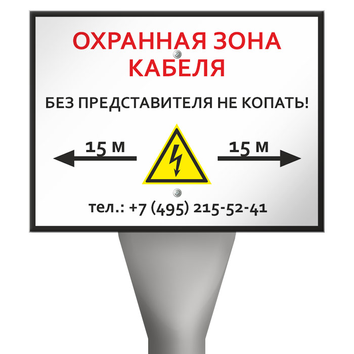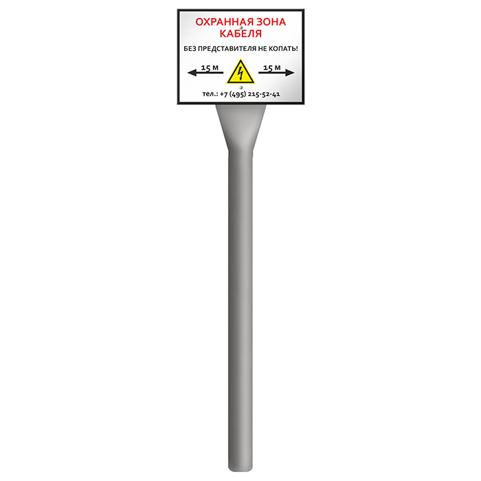 Столбик кабельный СКТ-1,6 с металлическим знаком OZK-02 «Охранная зона кабеля. Без представителей не копать» в Твери купить