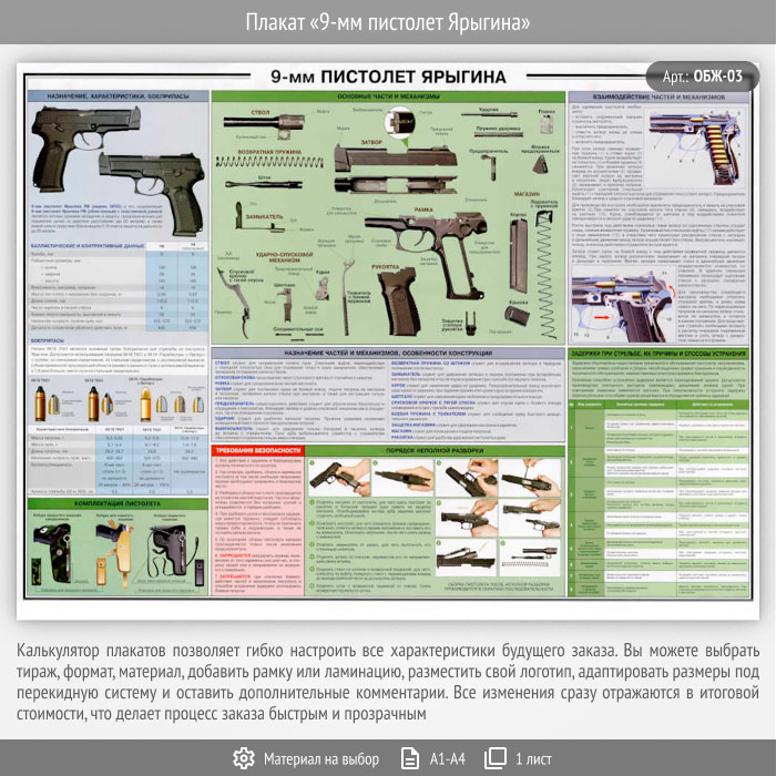 Плакат «9-мм пистолет Ярыгина» (ОБЖ-03, 1 лист) в Твери купить