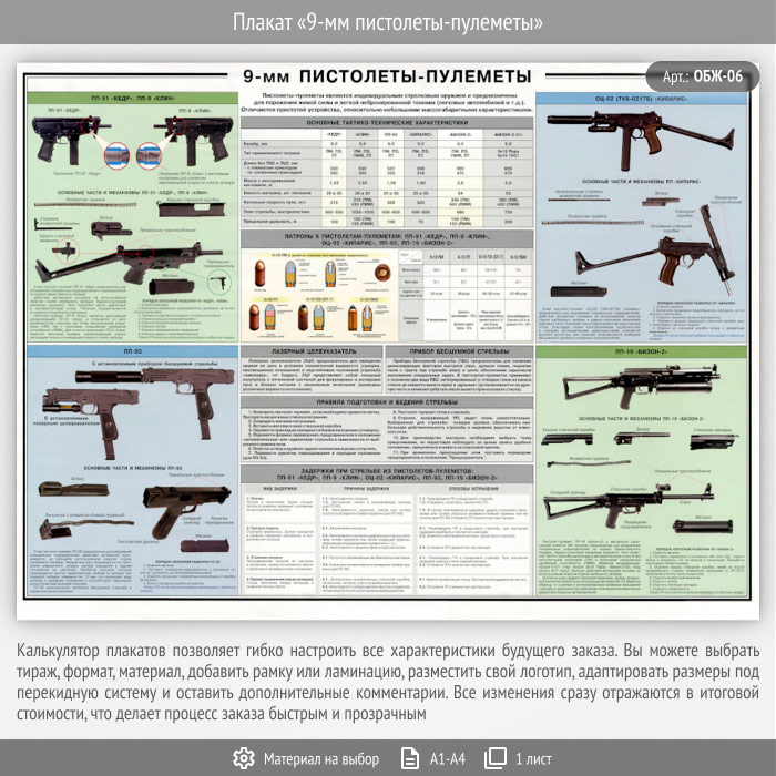 Плакат «9-мм пистолеты-пулеметы» (ОБЖ-06, 1 лист) в Твери купить