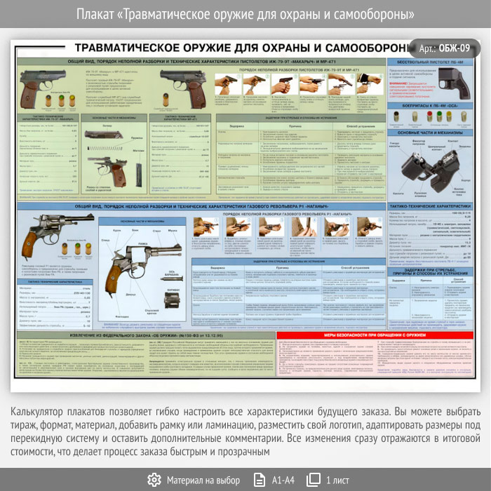 Плакат «Травматическое оружие для охраны и самообороны» (ОБЖ-09, 1 лист) в Твери купить