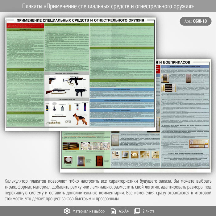 Плакаты «Применение специальных средств и огнестрельного оружия» (ОБЖ-10, 2 листа) в Твери купить