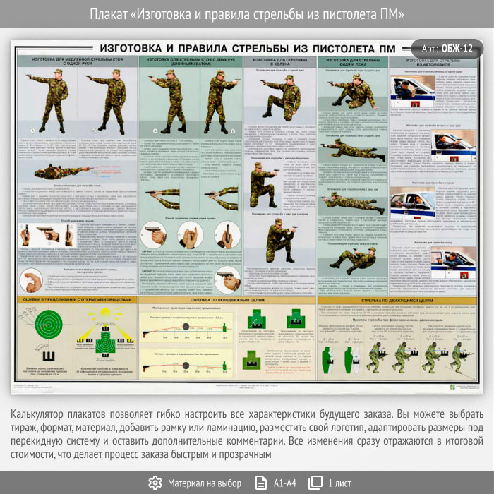 Плакат «Изготовка и правила стрельбы из пистолета ПМ» (ОБЖ-12, 1 лист) в Твери купить