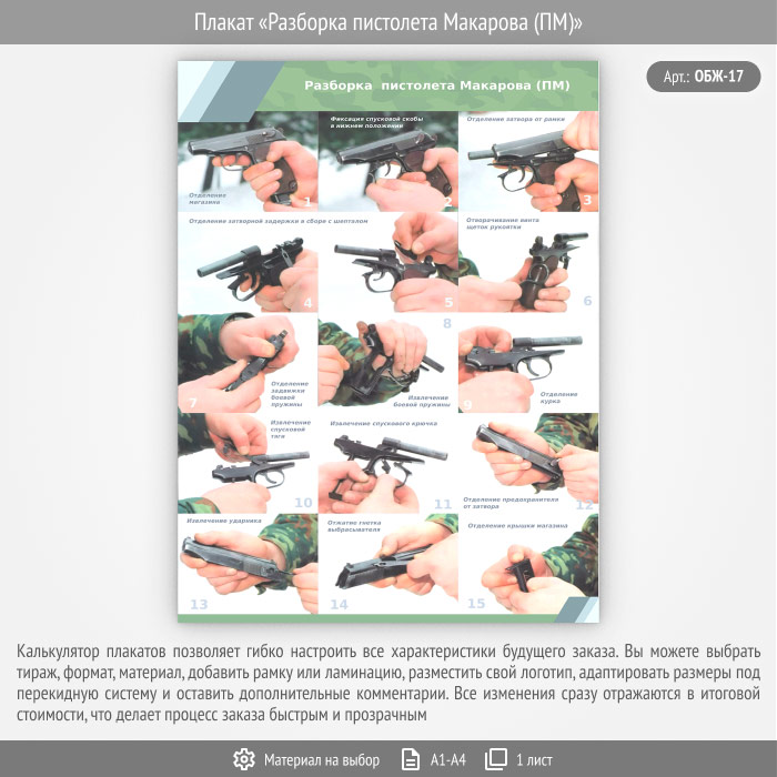 Плакат «Разборка пистолета Макарова (ПМ)» (ОБЖ-17, 1 лист) в Твери купить