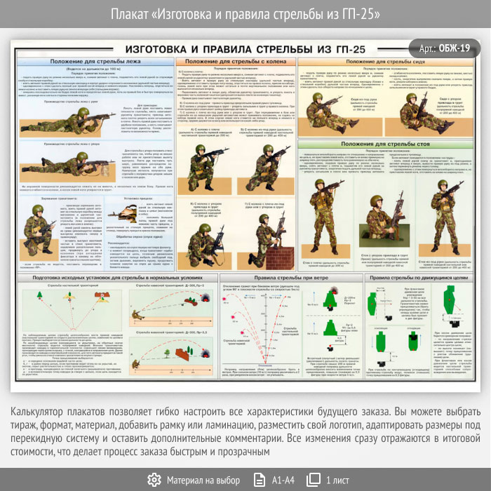 Плакат «Изготовка и правила стрельбы из ГП-25» (ОБЖ-19, 1 лист) в Твери купить