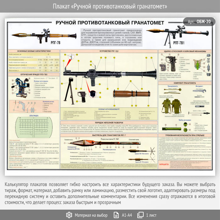 Плакат «Ручной противотанковый гранатомет» (ОБЖ-20, 1 лист) в Твери купить