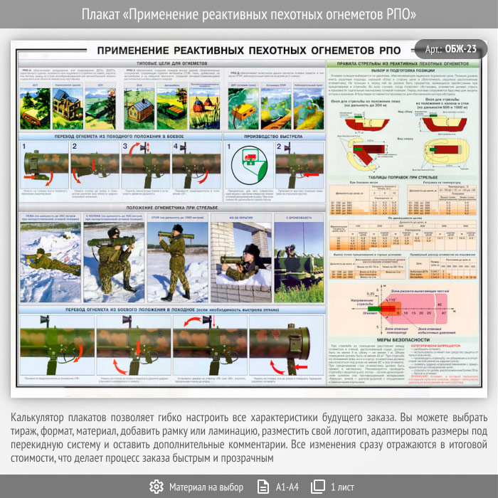 Плакат «Применение реактивных пехотных огнеметов РПО» (ОБЖ-23, 1 лист) в Твери купить