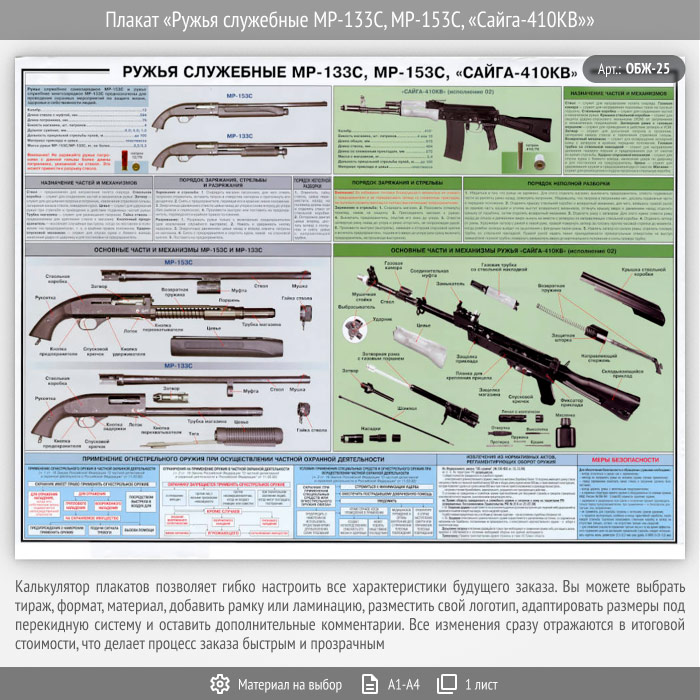 Плакат «Ружья служебные МР-133С, МР-153С, «Сайга-410КВ»» (ОБЖ-25, 1 лист) в Твери купить