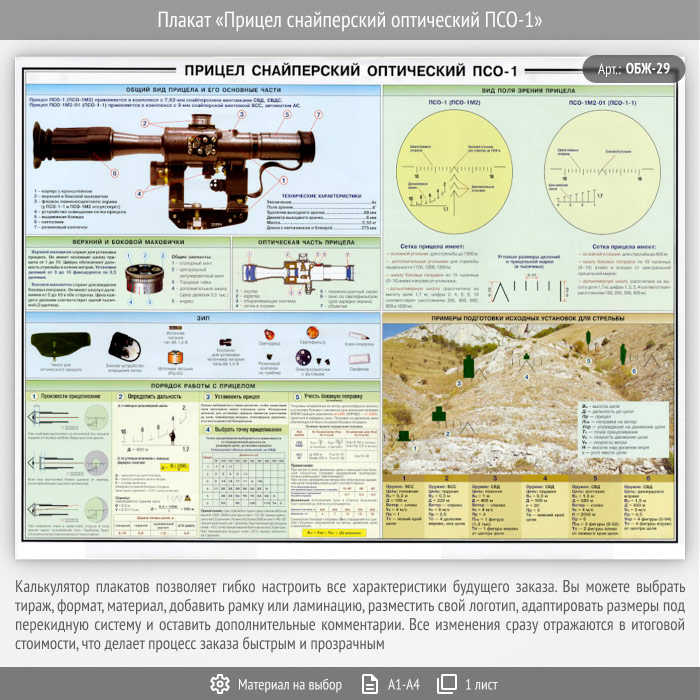 Плакат «Прицел снайперский оптический ПСО-1» (ОБЖ-29, 1 лист) в Твери купить