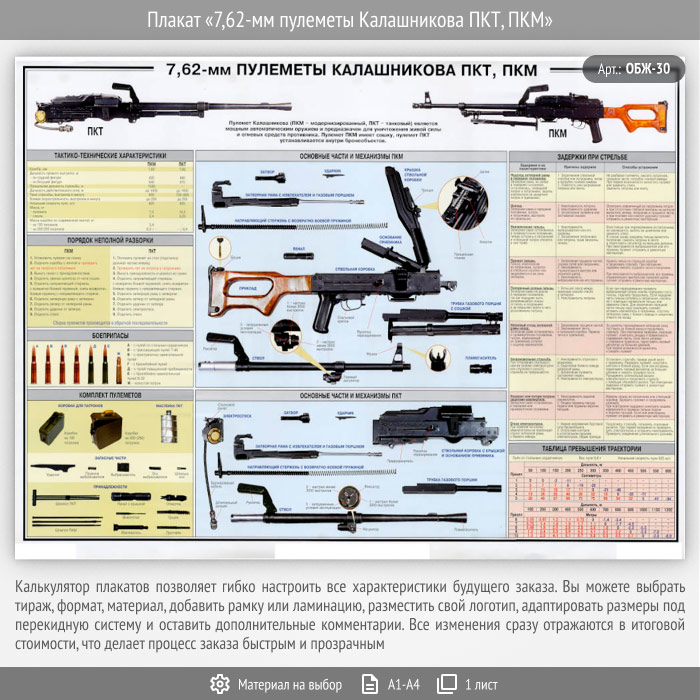 Плакат «7,62-мм пулеметы Калашникова ПКТ, ПКМ» (ОБЖ-30, 1 лист) в Твери купить