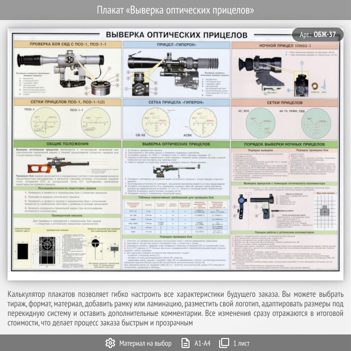 Плакат «Выверка оптических прицелов» (ОБЖ-37, 1 лист) в Твери купить