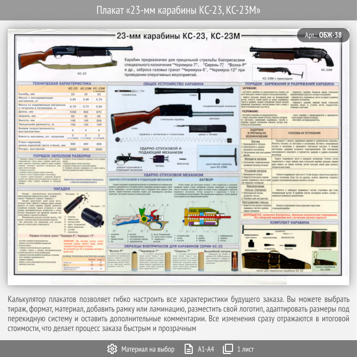 Плакат «23-мм карабины КС-23, КС-23М» (ОБЖ-38, 1 лист) в Твери купить