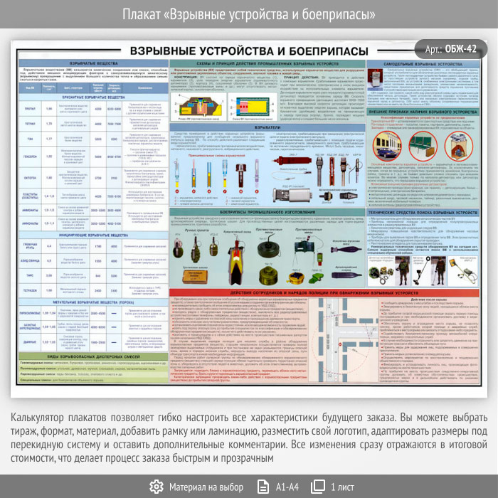 Плакат «Взрывные устройства и боеприпасы» (ОБЖ-42, 1 лист) в Твери купить