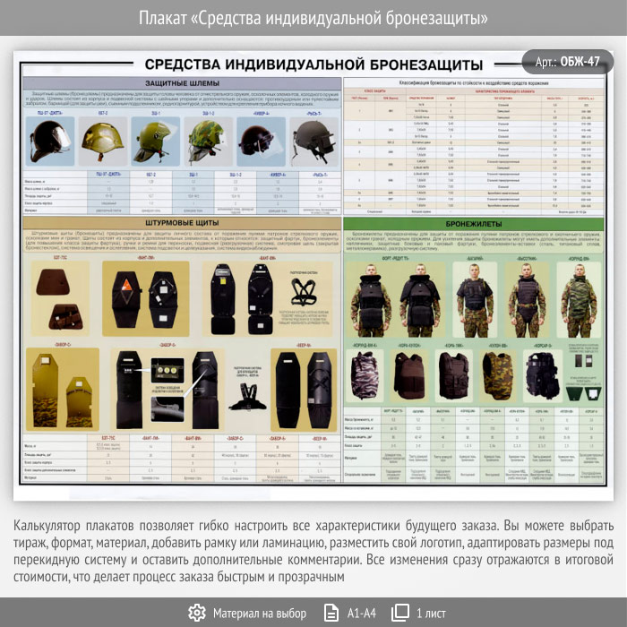 Плакат «Средства индивидуальной бронезащиты» (ОБЖ-47, 1 лист) в Твери купить