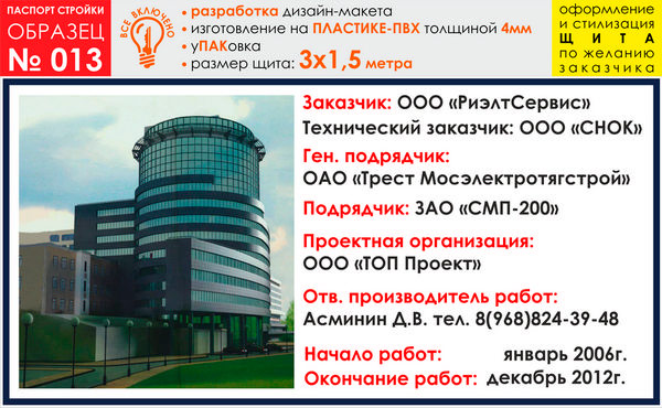 Паспорт стройки, образец № 13 (баннерная ткань, 4000х2000 cм)