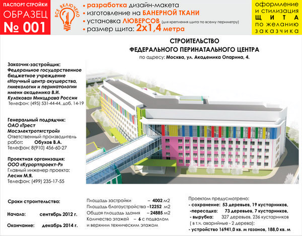 Паспорт стройки, образец № 1 (баннерная ткань, 2000х1400 cм) в Твери купить