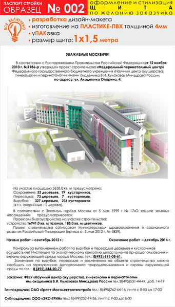 Паспорт стройки, образец № 2 (пластик 4 мм, 1000х1500 cм) в Твери купить
