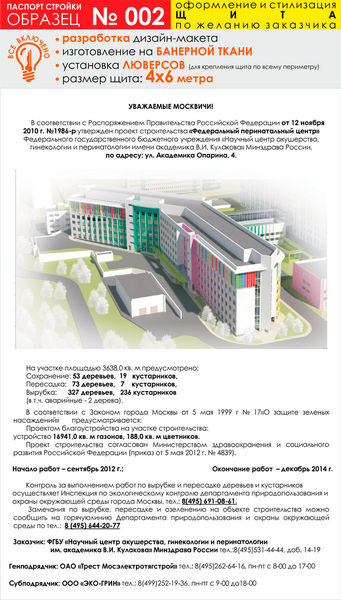 Паспорт стройки, образец № 2 (баннерная ткань, 4000х6000 см) в Твери купить