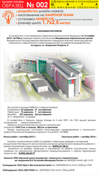Паспорт стройки, образец № 2 (баннерная ткань, 1700х2500 см) в Твери купить