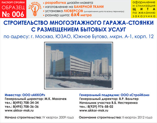 Паспорт стройки, образец № 6 (баннерная ткань, 6000х4000 cм) в Твери купить