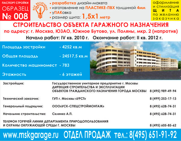 Паспорт стройки, образец № 8 (пластик 4 мм, 1500х1000 cм) в Твери купить