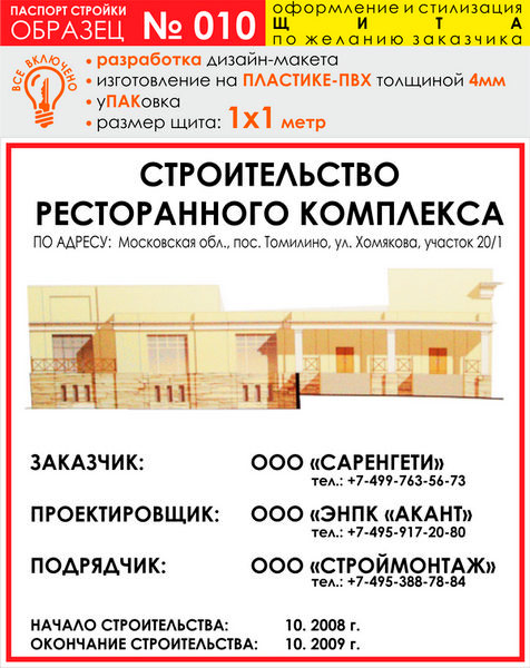 Паспорт стройки, образец № 10 (пластик 4 мм, 1000х1000 cм) в Твери купить