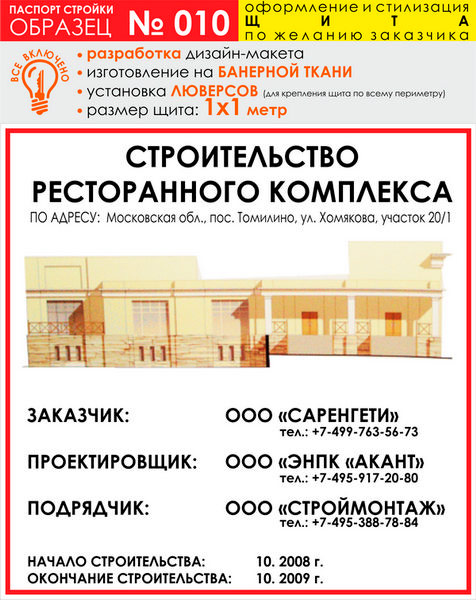 Паспорт стройки, образец № 10 (баннерная ткань, 1000х1000 cм) в Твери купить