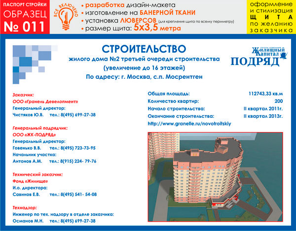 Паспорт стройки, образец № 11 (баннерная ткань, 5000х3500 cм) в Твери купить