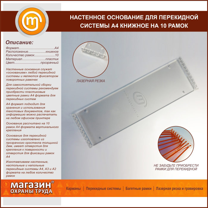 Настенное основание для перекидной системы А4 книжное на 10 рамок (оргстекло) в Твери купить