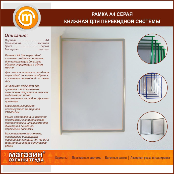 Рамка А4 серая книжная в Твери купить