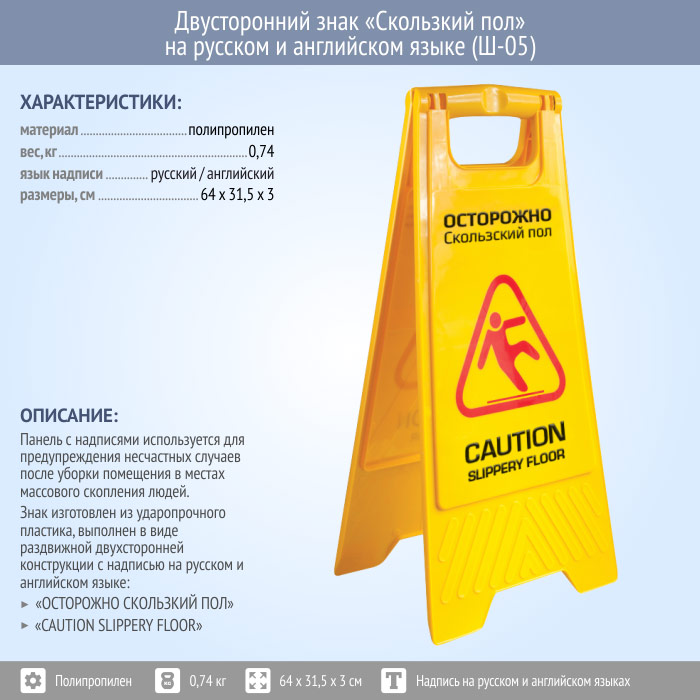 Знак «Скользкий пол» на русском и английском языке (Ш-05) в Твери купить