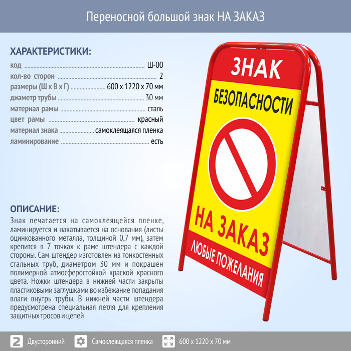 Переносной большой знак НА ЗАКАЗ (двусторонний, самоклеящаяся пленка) в Твери купить