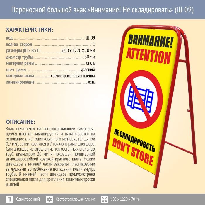 Переносной большой знак «Внимание! Не складировать» (Ш-09, односторонний, светоотражающая пленка) в Твери купить