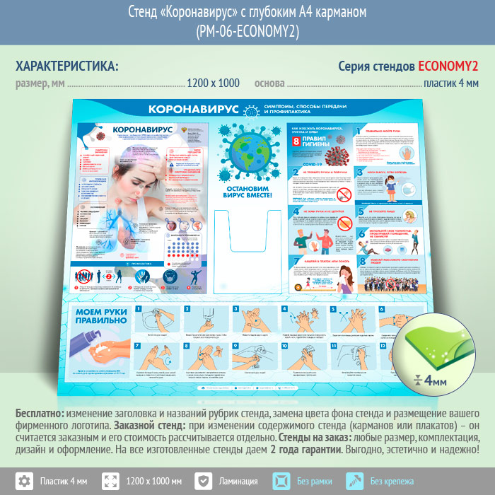 Стенд «Коронавирус» с глубоким А4 карманом (PM-06-ECONOMY2) в Твери купить