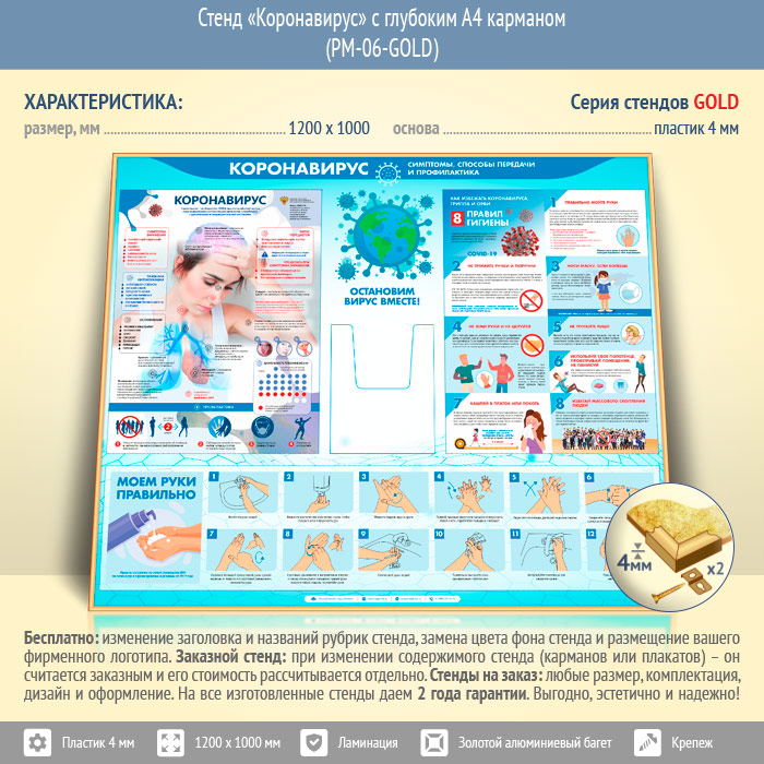 Стенд «Коронавирус» с глубоким А4 карманом (PM-06-GOLD) в Твери купить