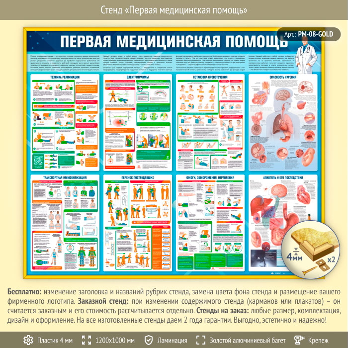 Стенд «Первая медицинская помощь» (PM-08-GOLD) в Твери купить