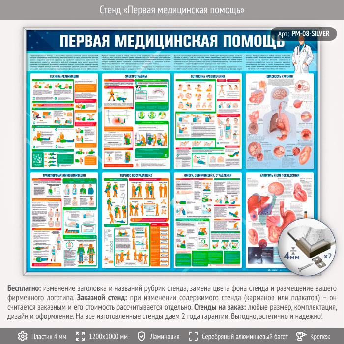 Стенд «Первая медицинская помощь» (PM-08-SILVER) в Твери купить