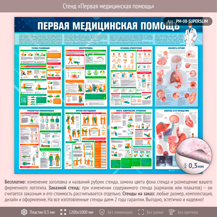 Стенд «Первая медицинская помощь» (PM-08-SUPERSLIM) в Твери купить