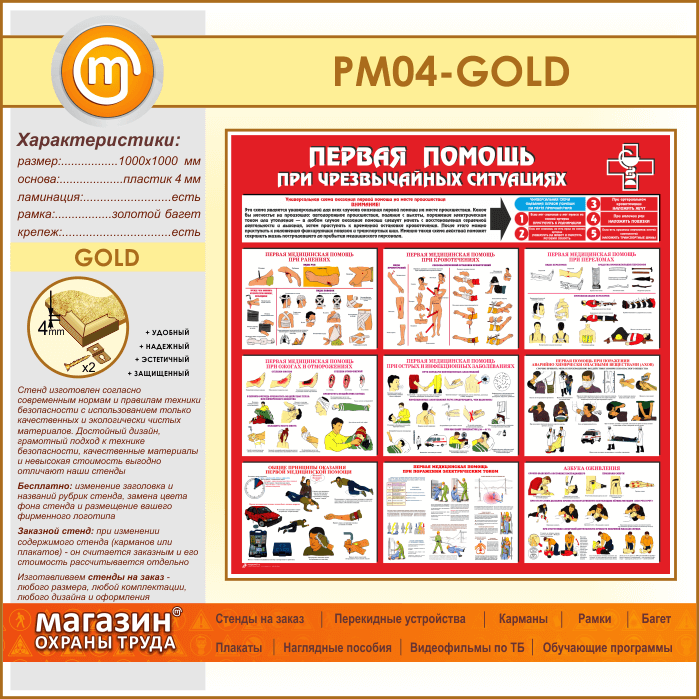 Стенд «Первая помощь при чрезвычайных ситуациях» (PM-04-GOLD) в Твери купить