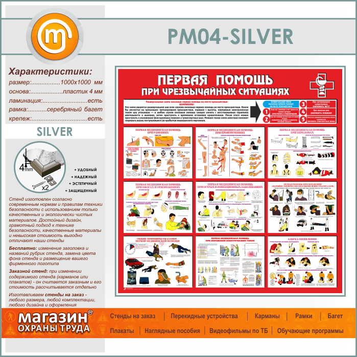 Стенд «Первая помощь при чрезвычайных ситуациях» (PM-04-SILVER) в Твери купить