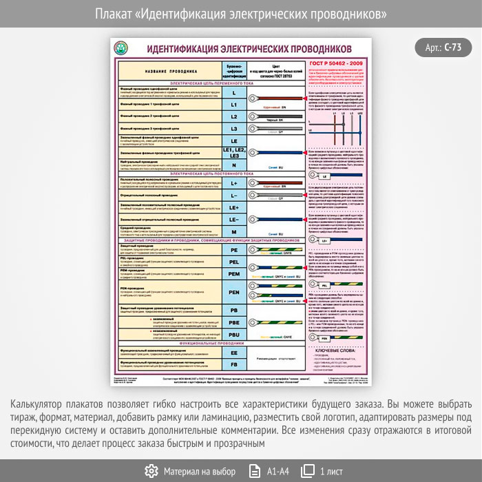 Плакат «Идентификация электрических проводников» (С-73, 1 лист)