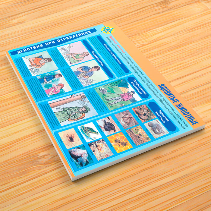 - Плакат «Ядовитые животные» – признаки отравления, первая помощь, профилактика отравлений