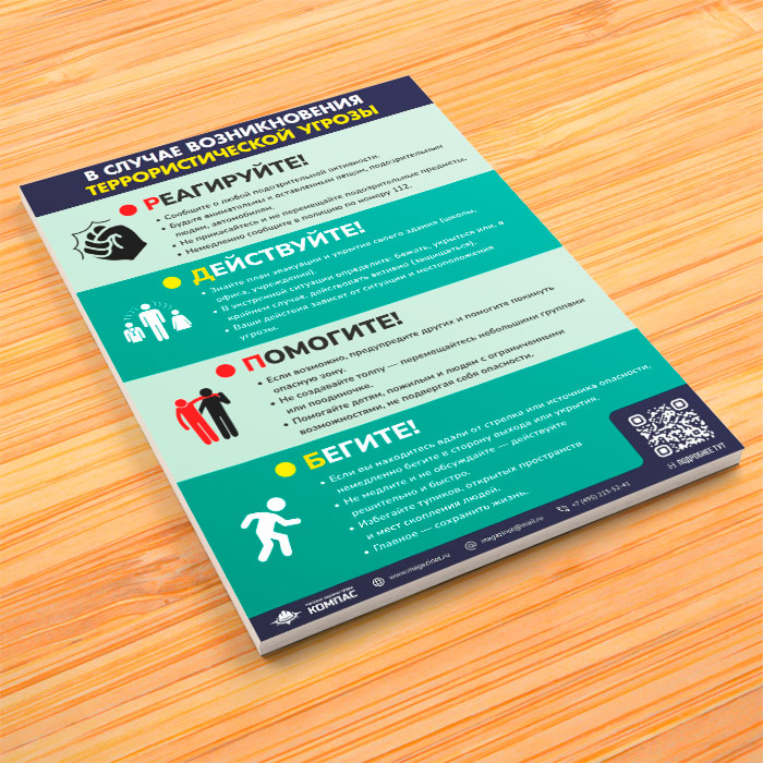 Плакат «В случае возникновения террористической угрозы» (М-109, ламинированная бумага, А3, 1 лист) в Твери купить