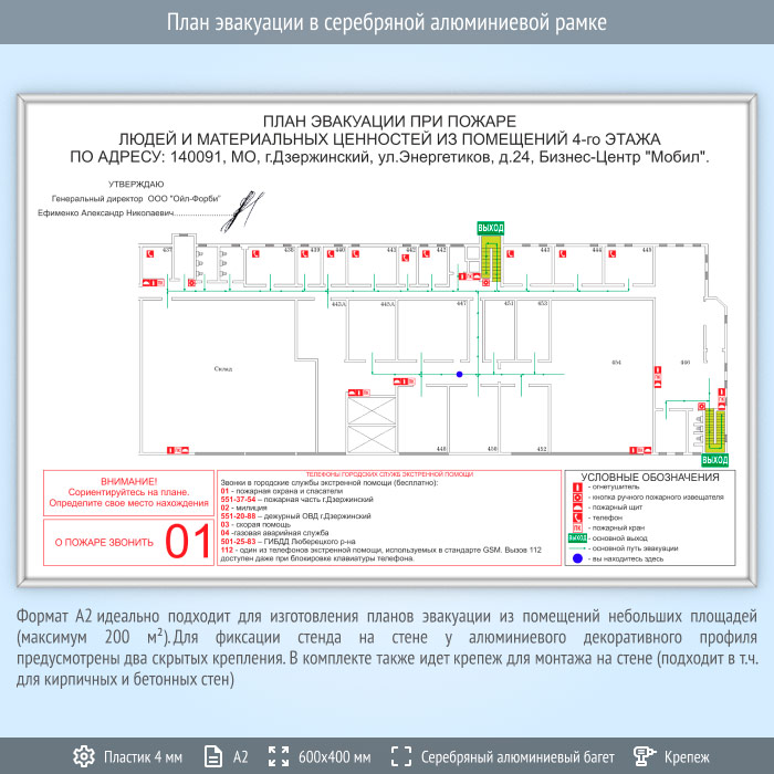 План эвакуации в серебряной алюминиевой рамке (А2 формат) в Твери купить