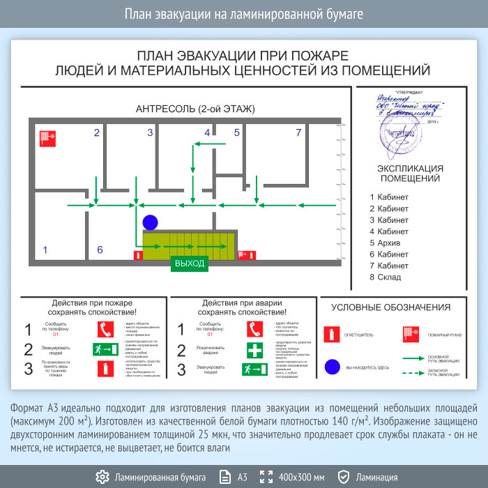 План эвакуации на ламинированной бумаге (А3 формат) в Твери купить