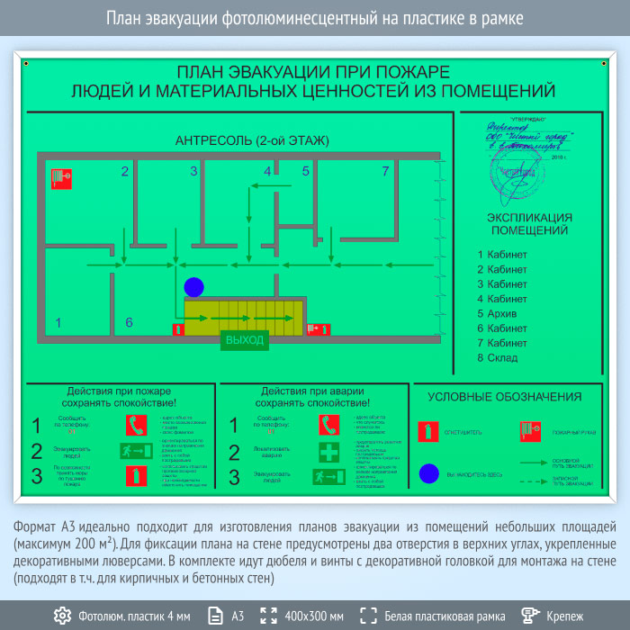 План эвакуации фотолюминесцентный на пластике в рамке (А3 формат) в Твери купить