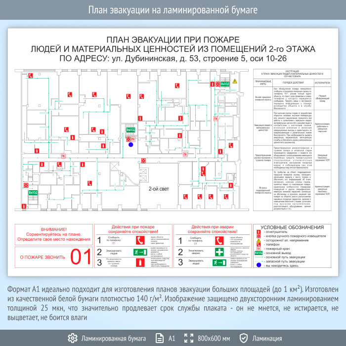 План эвакуации на ламинированной бумаге (А1 формат) в Твери купить