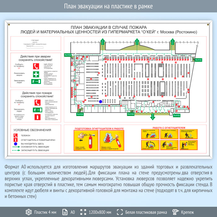 План эвакуации на пластике в рамке (А0 формат) в Твери купить