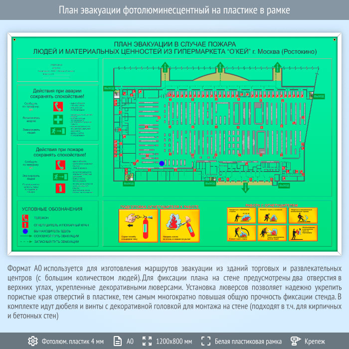 План эвакуации фотолюминесцентный на пластике в рамке (А0 формат) в Твери купить