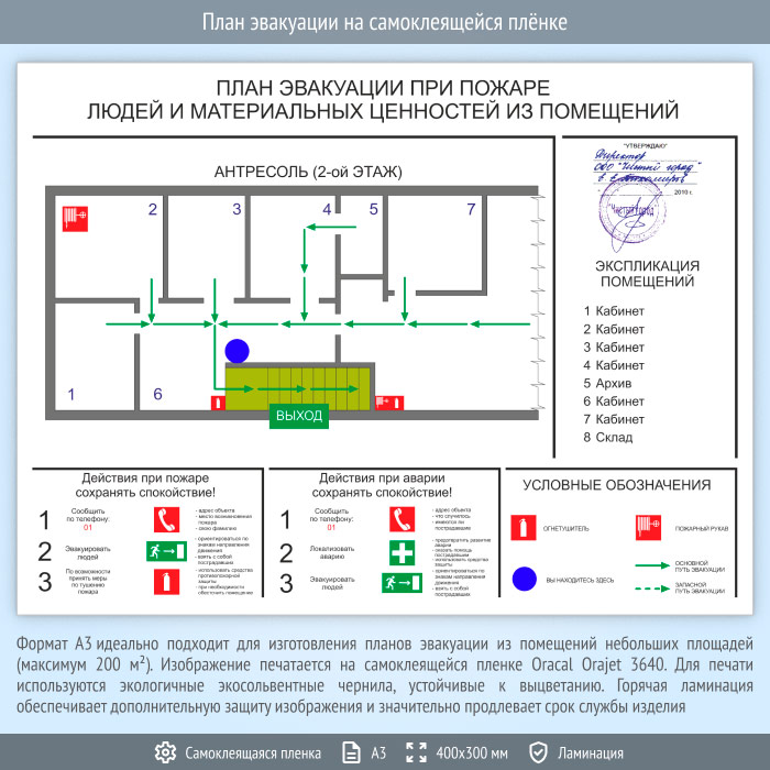 План эвакуации на самоклеящейся плёнке (А3 формат) в Твери купить